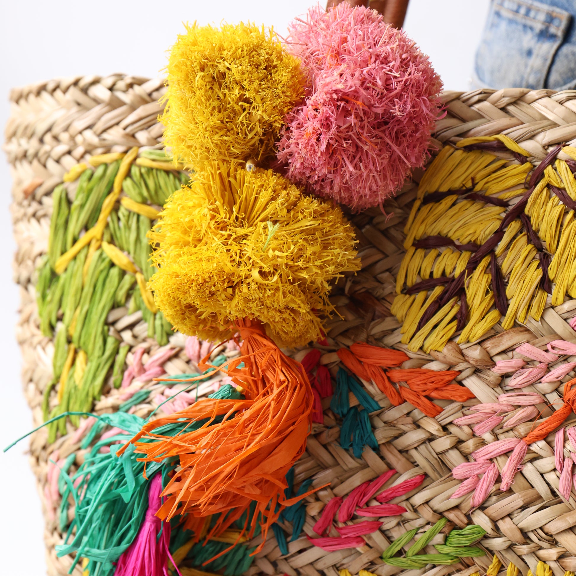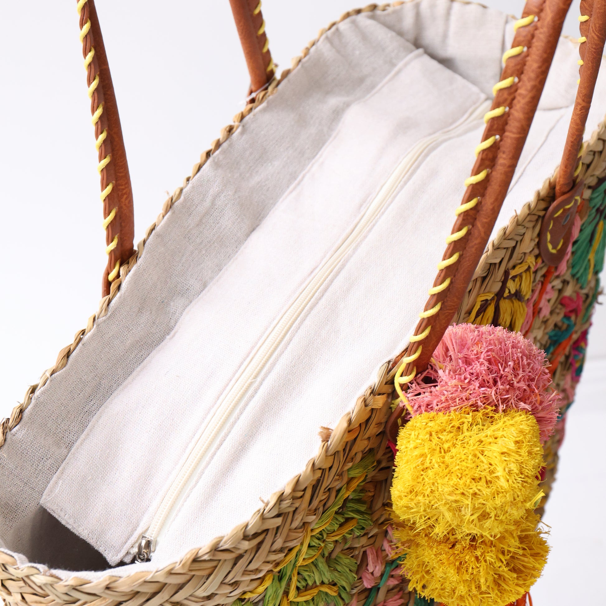 Bright, bold, and beautifully unique — the BRADY Basket Bag is made to stand out. Handwoven textures meet colourful floral embroidery, the playful tassels add a beautiful finish. Spacious yet secure with a zip closure and handy inner pocket, it’s the perfect companion for markets, beach days, and everything in between.