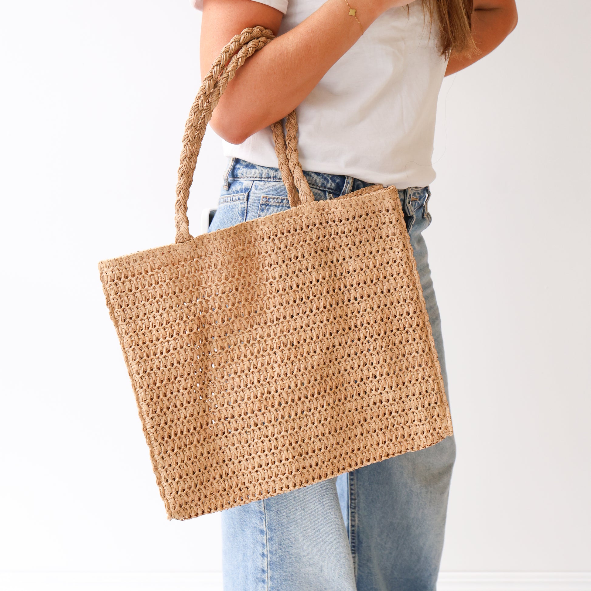 The BROOKE Tan shoulder bag combines style and practicality, ideal for daily use or a trip to the beach. Crafted from lightweight paper, it offers easy carrying without adding bulk. Its natural look complements any outfit, providing a reliable and comfortable accessory for your everyday essentials.