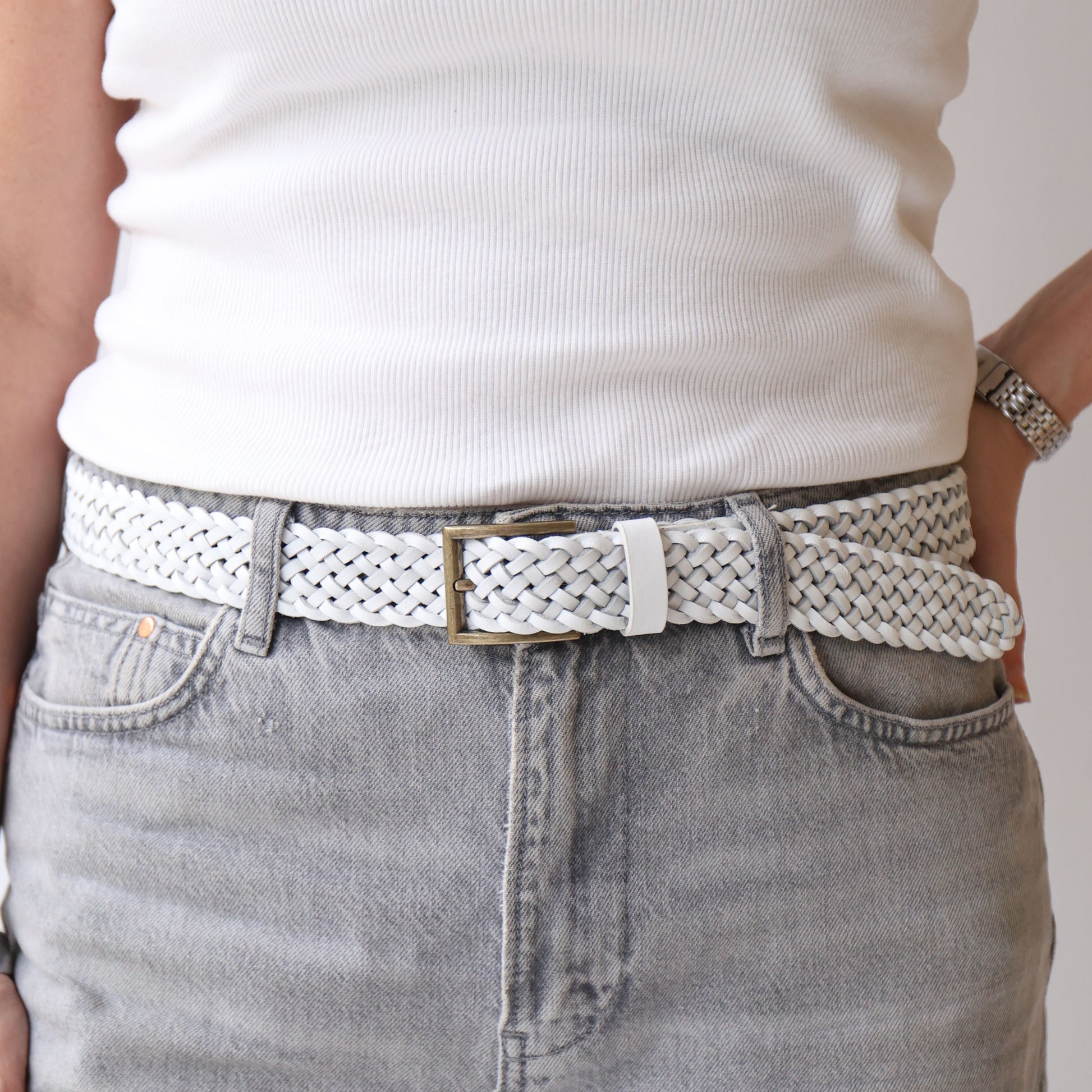 The IDA White woven leather belt offers a luxurious feel with the flexibility to achieve the exact fit you need. Crafted for comfort and style, it adapts to your waist perfectly, ensuring both elegance and practicality throughout your day.