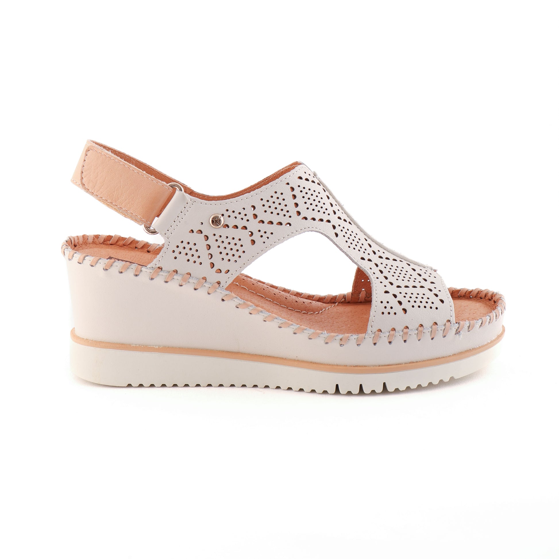 Our KELSEY White is a luxurious shoe crafted with a premium leather upper, decorative cut outs, and leather lining for a timeless design. Featuring a Velcro closure for easy wear, and expertly made in Spain, the wedge heel gives the shoe a sophisticated look and feel. Step out in style in KELSEY White.
