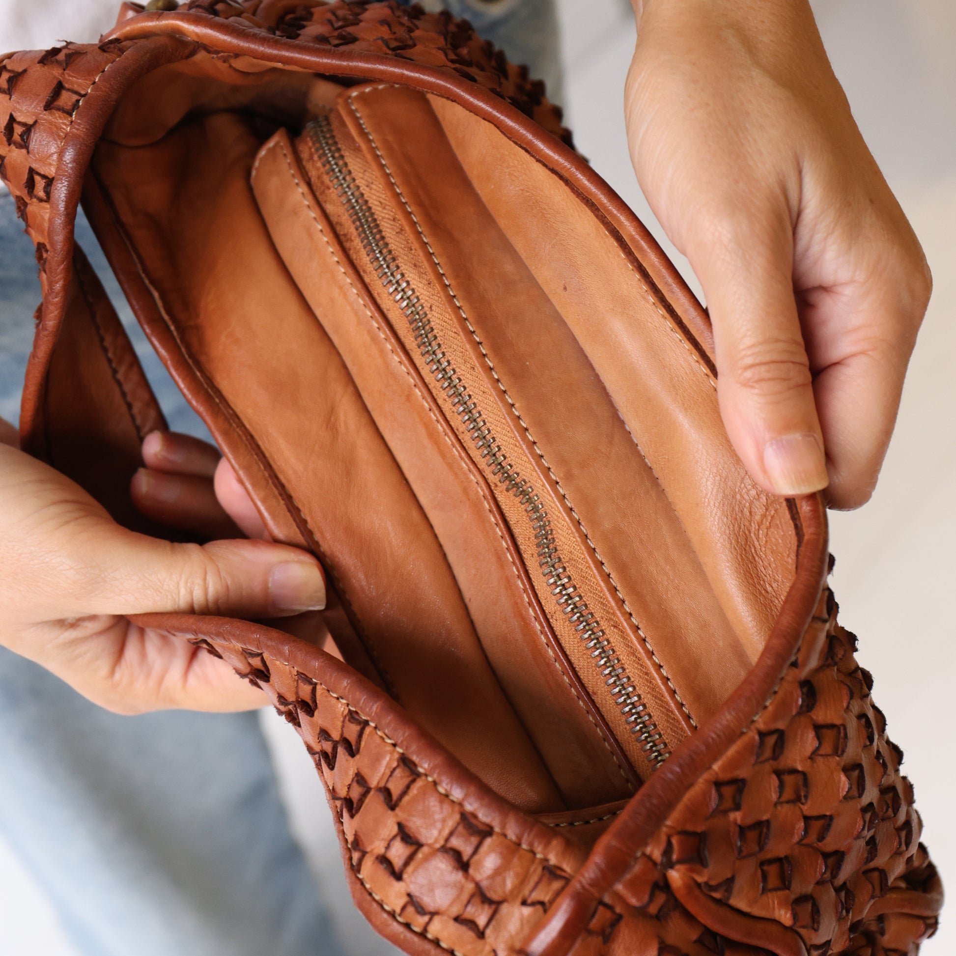 Produced in Italy from authentic leather, the NAPOLI Tan features a magnetic fold-over flap and secure zipper closure. It includes both an internal zipper pouch and an additional pocket for convenient organisation. The adjustable long strap ensures comfortable wear.