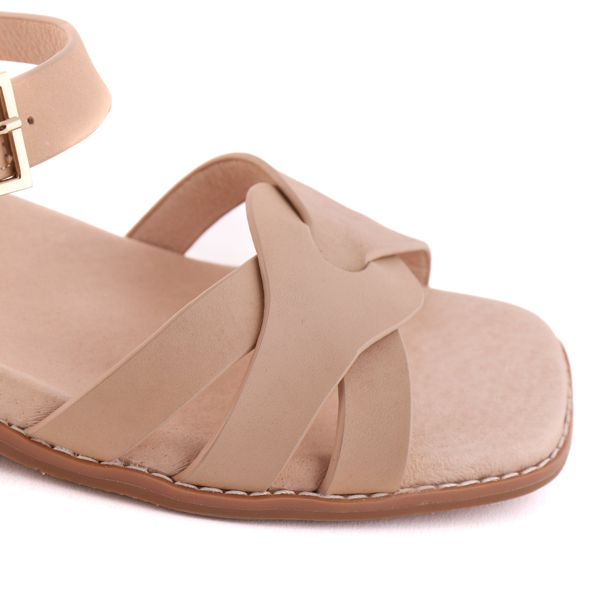 Introducing RUCE in Almond. Elevate your summer wardrobe with these stylish and comfortable cross-strap sandals. Featuring a soft, cushioned insole and adjustable straps for a personalised fit, these sandals offer all-day comfort without sacrificing style. The versatile design makes them perfect for casual outings or dressy occasions.