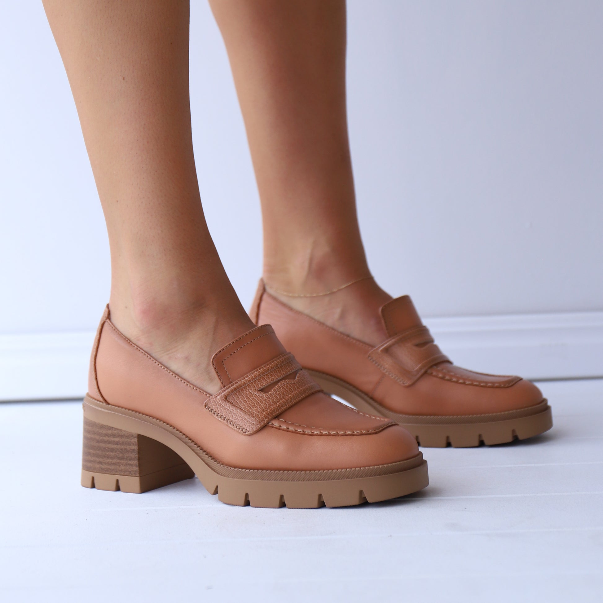 Indulge in luxury with the SYLVIO Apricot chunky-soled loafer. Made in Spain, this loafer features a leather upper and a soft sole, providing both style and comfort. With a sophisticated 6.5cm heel, elevate your wardrobe with this exclusive and tasteful piece.